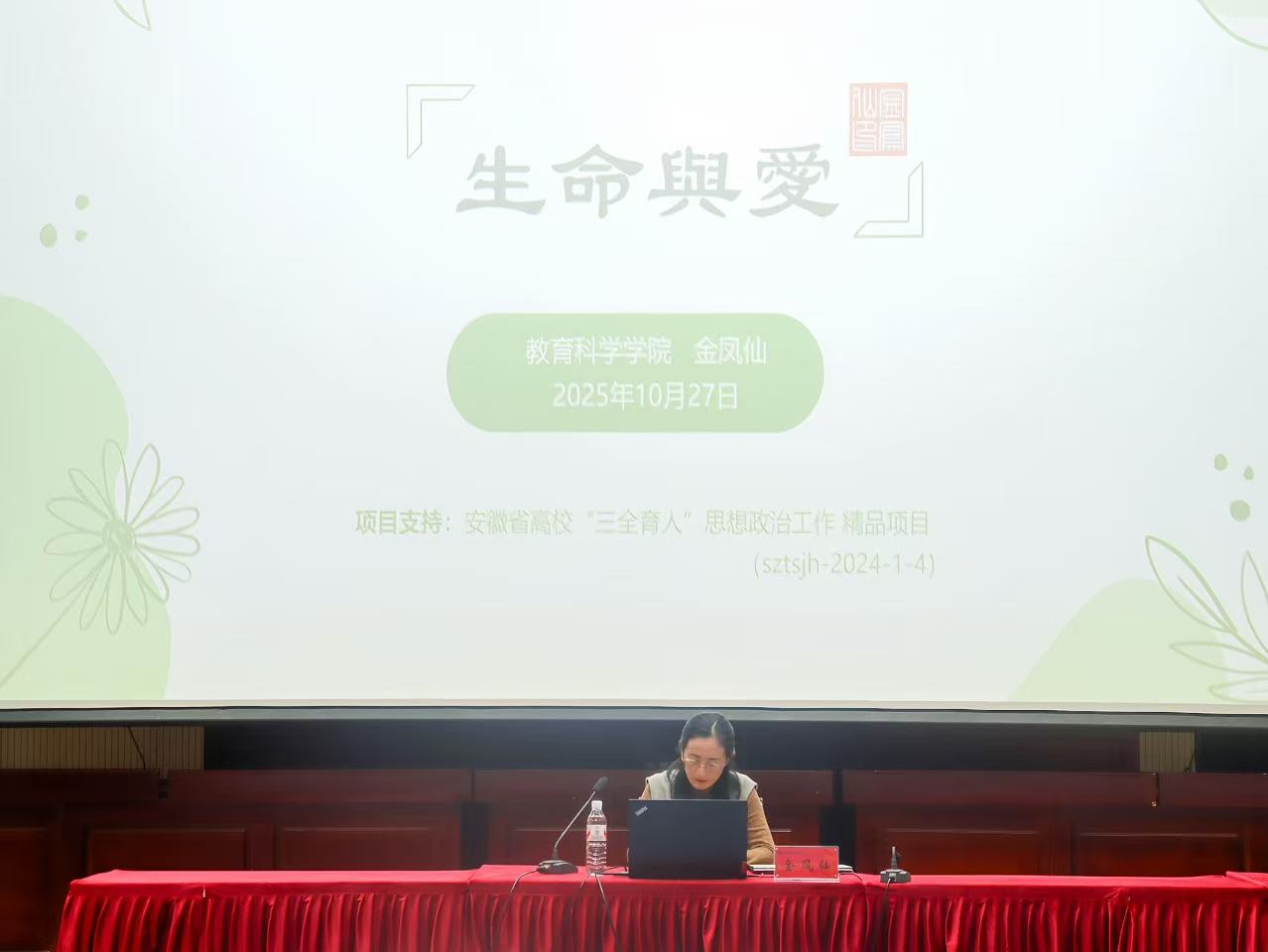 为提升新生思想政治觉悟,铸牢信仰根基,厚植家国情怀,同时懂得珍爱自我,敬畏生命。10月27日晚,教育科学学院于赭山校区科技礼堂开展2025级本科生入党启蒙教育与生命教育讲座。院党委书记许国飞,2023级本科生辅导员金凤仙,2025级新生辅导员赵茜,2023级与2025级新生辅导员张理强以及2025级全体本科生参会。