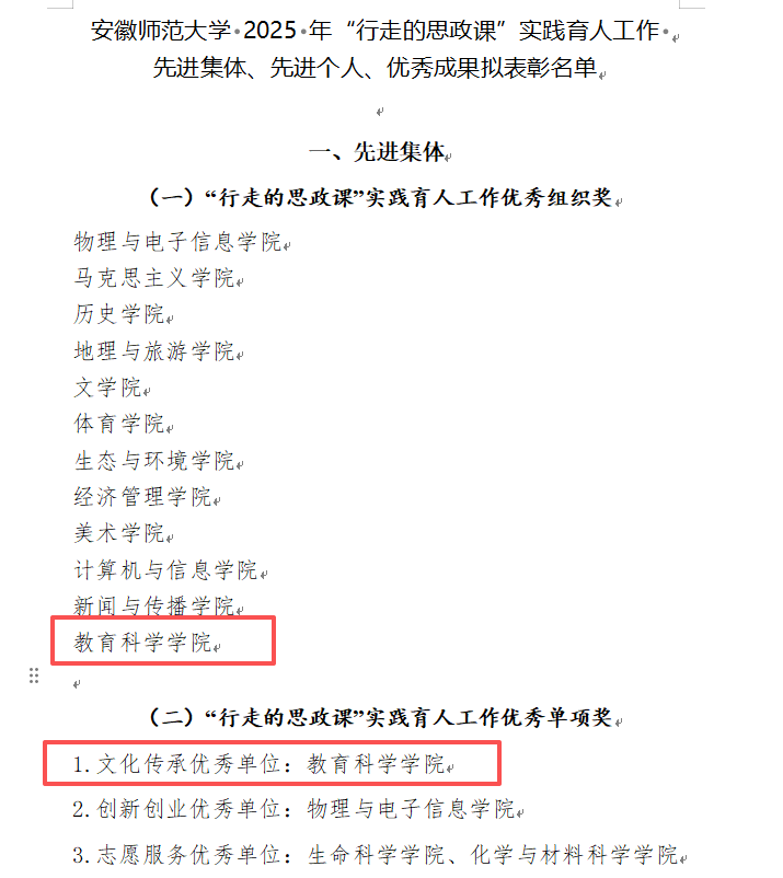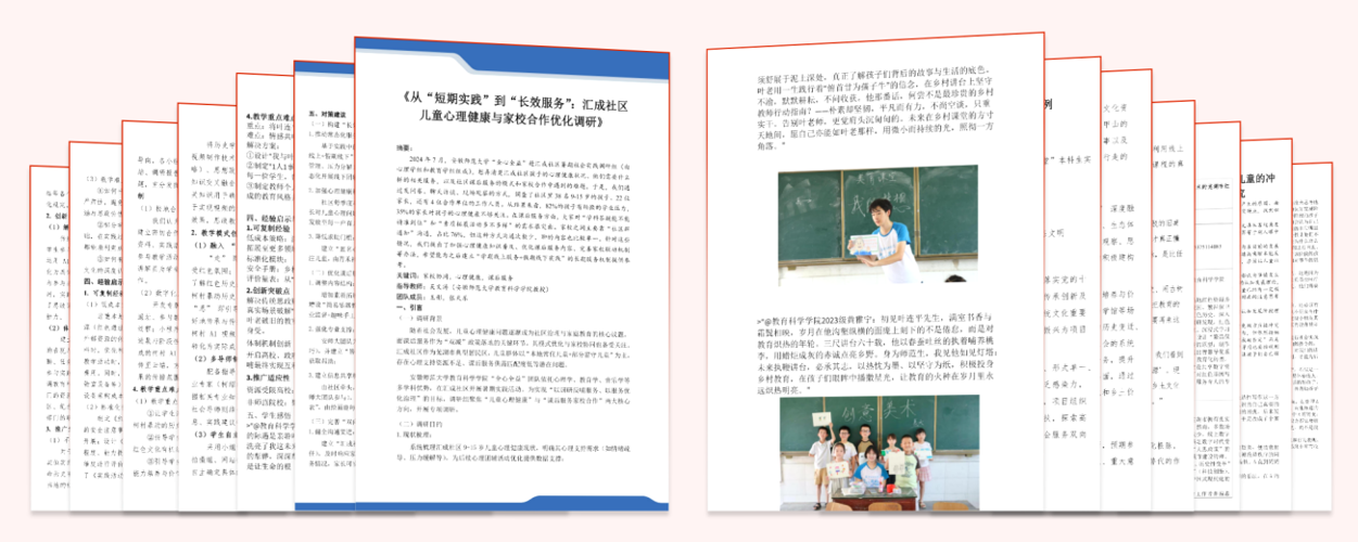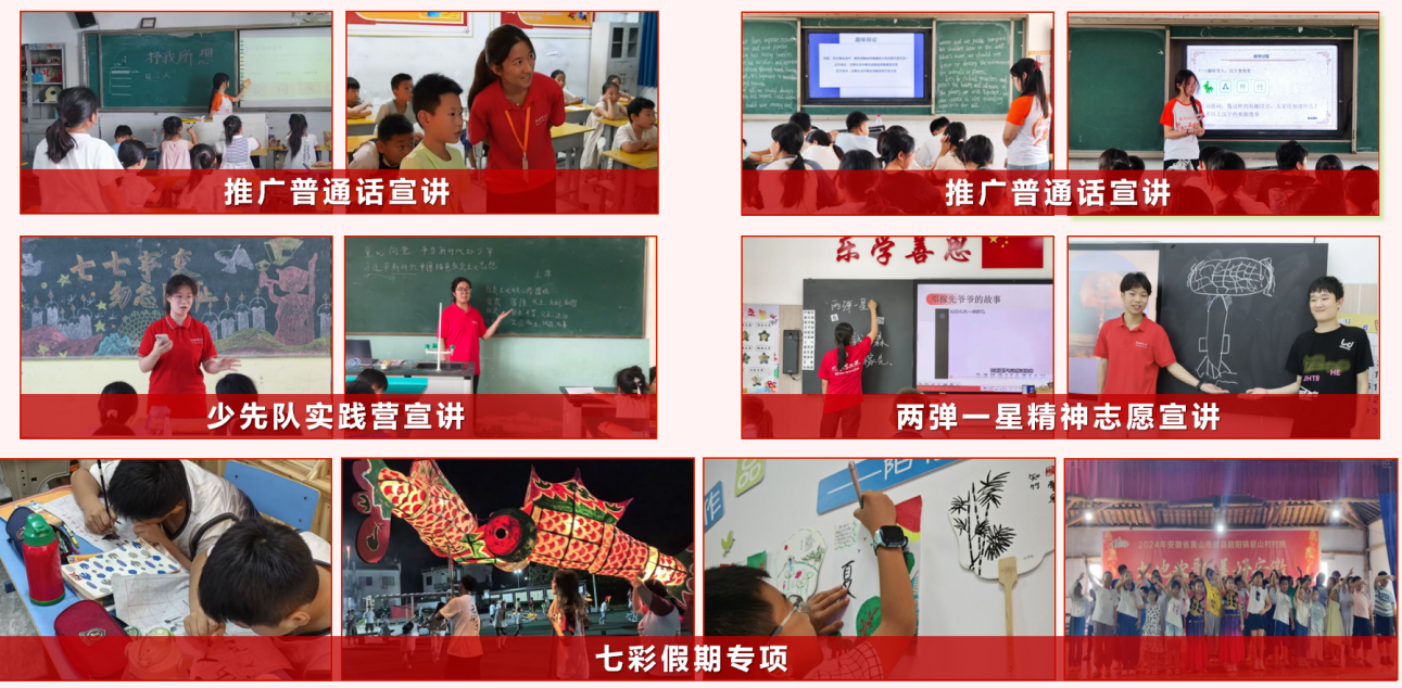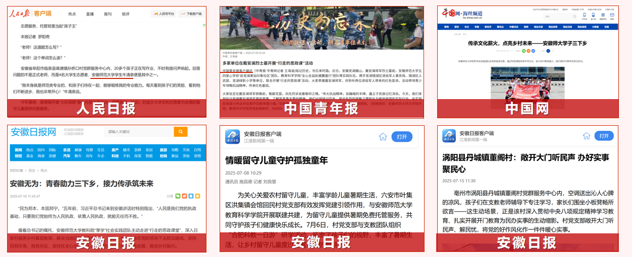 暑期,学院组建38支暑期社会实践团队,共659名学生组队参加暑期社会实践活动。推荐校级重点队伍11支(本科生9支,研究生2支),3支队伍获批国家级专项团队,其中团中央“七彩假期”志愿服务团1项、团中央推普助力乡村振兴项目1项、团中央“两弹一星”精神志愿宣讲团1项、安徽省少先队实践营专项1项,立项数位居学校前列。38支实践队伍围绕“走看讲思做”教学模式,精心制定实践方案,从前期筹备到实地开展,每个环节都经过细致规划。各团队依据专业特色与项目要求,明确“走”的路线与“看”的重点,提前准备“讲”的内容,设计“思”的引导问题,规划“做”的具体任务,形成走看讲思做层层递进与螺旋上升的实践育人新模式,形成的“行走的思政课”课程案例38份、课程讲稿60余份,累积服务学生6400余人,累计宣传报道国家级31篇,省级20篇,地市级129篇。