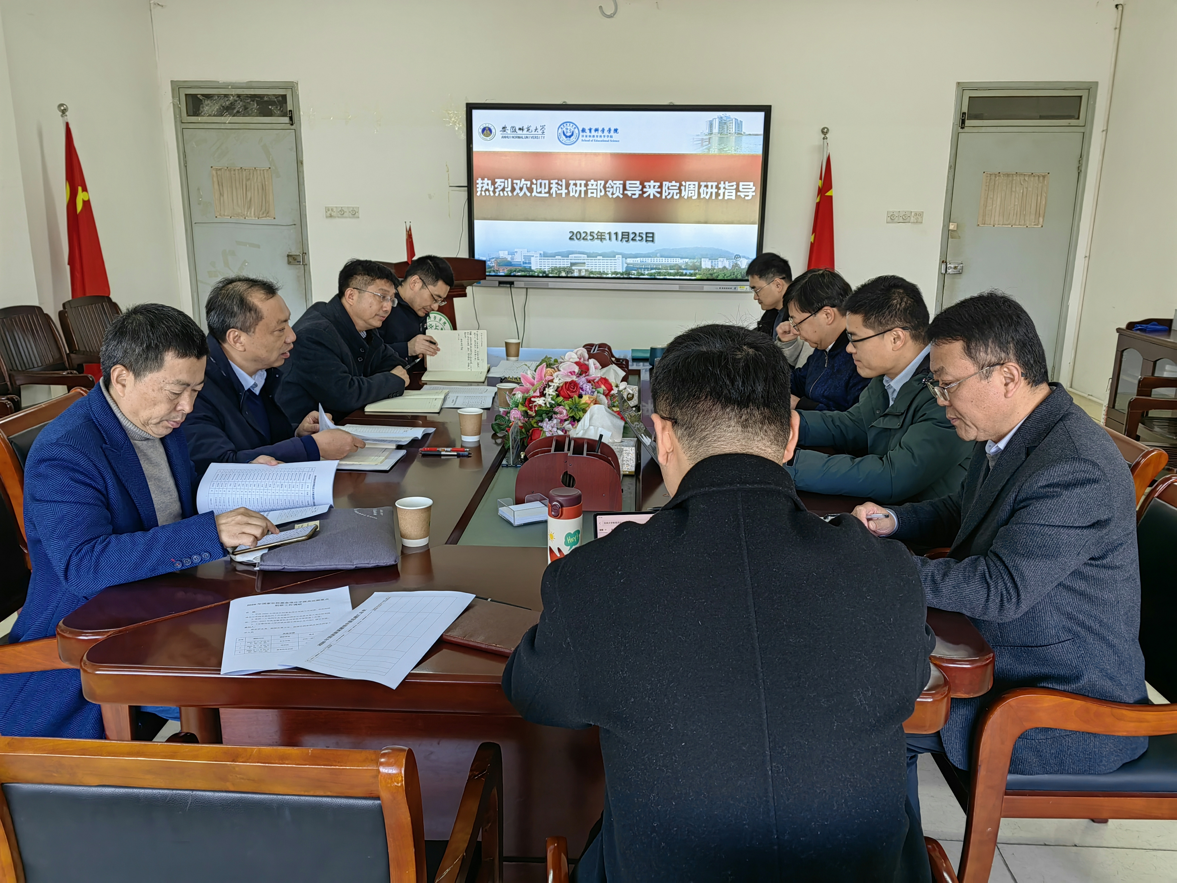 11月25日上午,校科研部部长罗永龙,副部长曹卫东、韩家炳,人文社科管理办公室戴忠朝深入学院调研指导,学院领导班子全体成员参会,会议在308会议室召开。