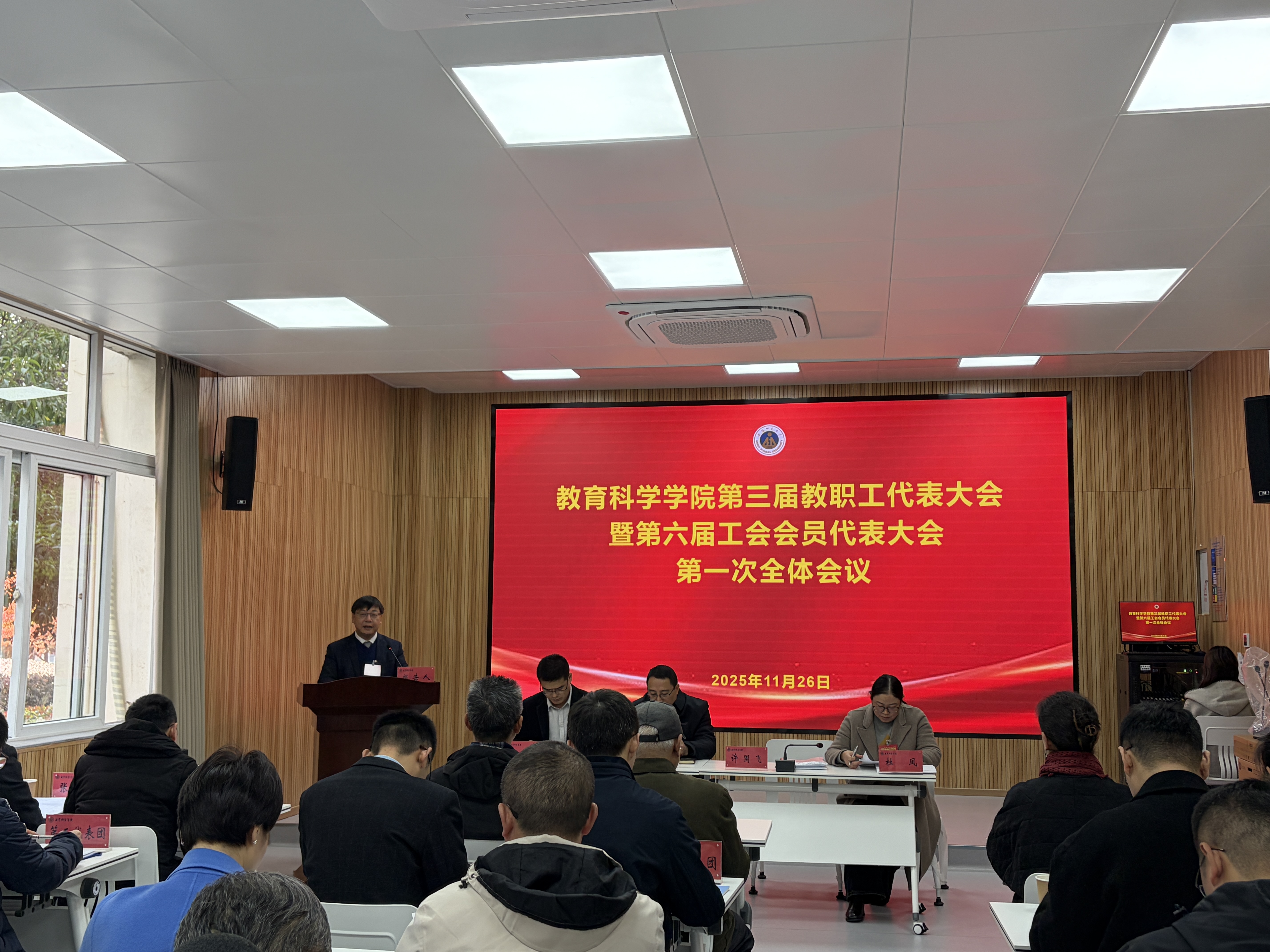 11月26日,教育科学学院第三届教职工代表大会暨第六届工会会员代表大会于学院一楼长三角教育一体化发展安徽研究院报告厅隆重召开,会议由院党委副书记、院长吴文涛主持,校教代会执委会副主任、机关党委书记汪俊武受邀出席,教育科学学院教职工代表、工会会员代表、特邀代表、列席代表等56人参加会议。
