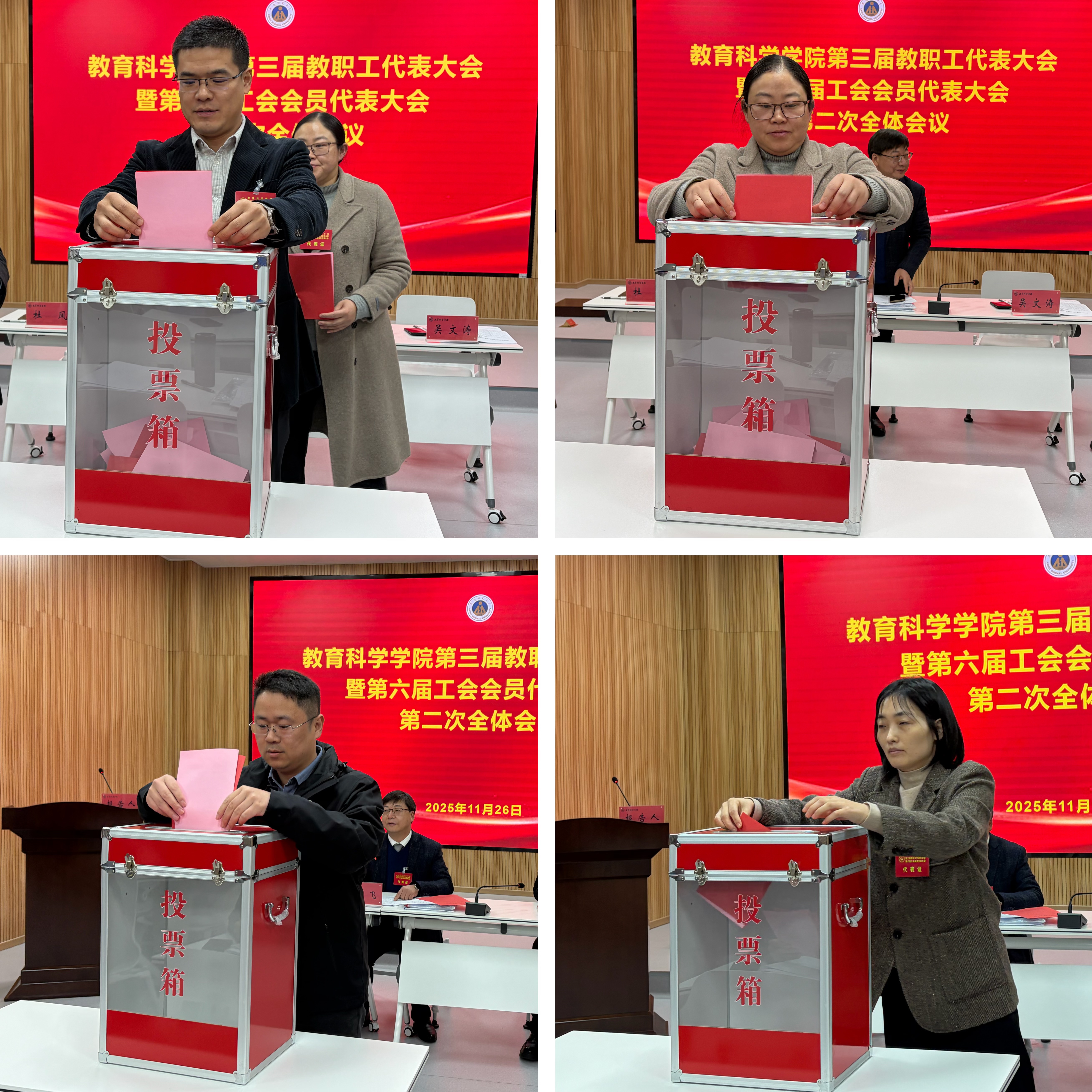 大会第二阶段进行了庄严而隆重的两委委员正式选举环节。按照既定程序,大会通过了《教育科学学院第三届教职工代表大会执行委员会委员暨第六届工会委员会委员选举办法(草案)》、监票人计票人名单、两委候选人建议人选名单等,无记名投票选举产生教育科学学院新一届两委委员。