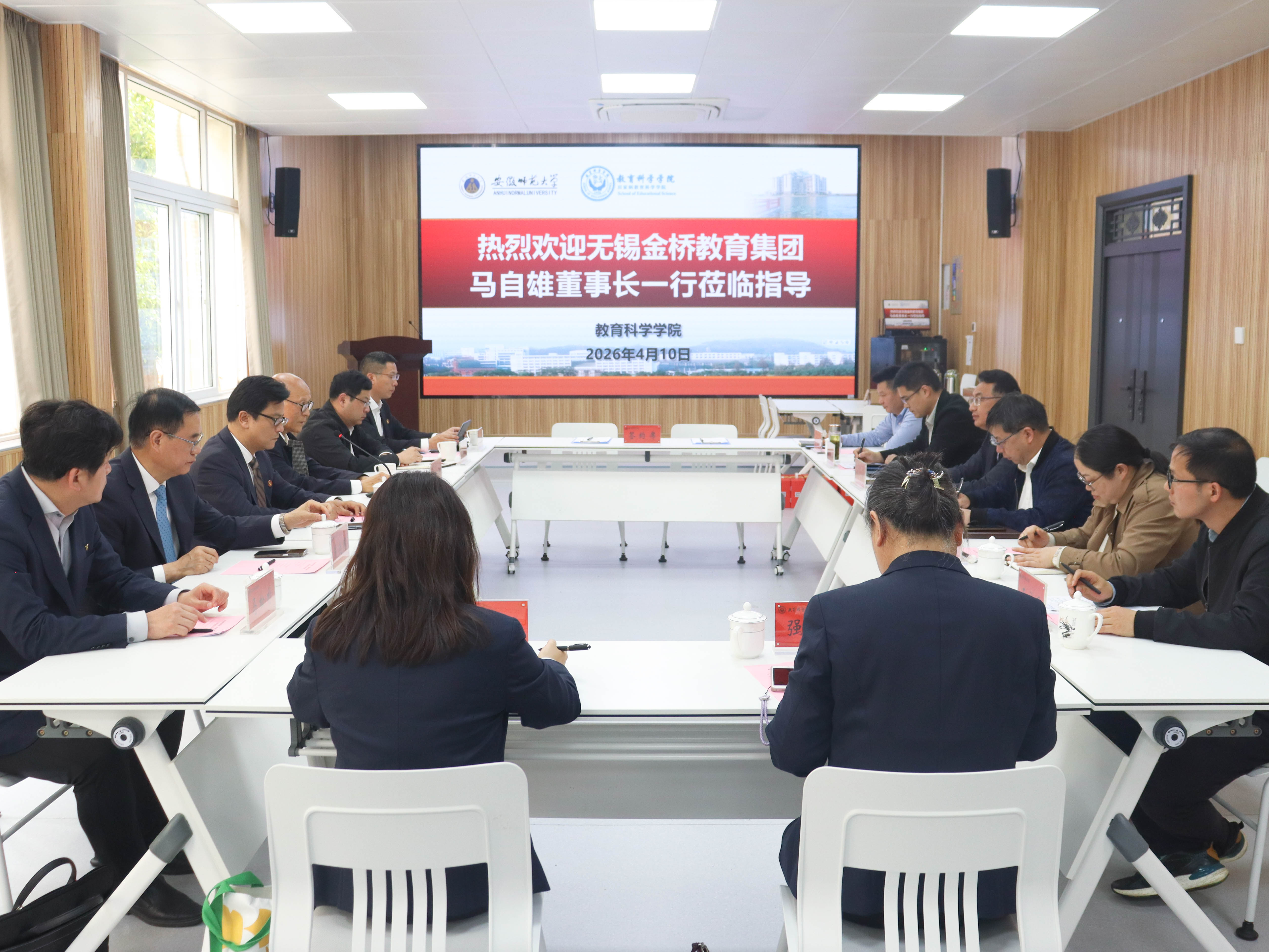 4月10日下午,无锡金桥教育集团一行莅临教育科学学院洽谈合作并签订协议。无锡金桥教育集团董事长马自雄、总经理马翀、副总经理陈东波、总督学凌光明、总经理助理兼综合办主任马松杉、人力资源部主任赵芸、教育研究院副院长强美君,无锡市新吴区金鸿实验学校书记、校长杨开勇,安徽师范大学校友工作办公室主任宋波,教科院党委书记许国飞、院长吴文涛、党委副书记杜凤、副院长王路曦、院长助理王礼军出席签约仪式。会议于教育科学学院一楼会议室举行,许国飞主持会议。