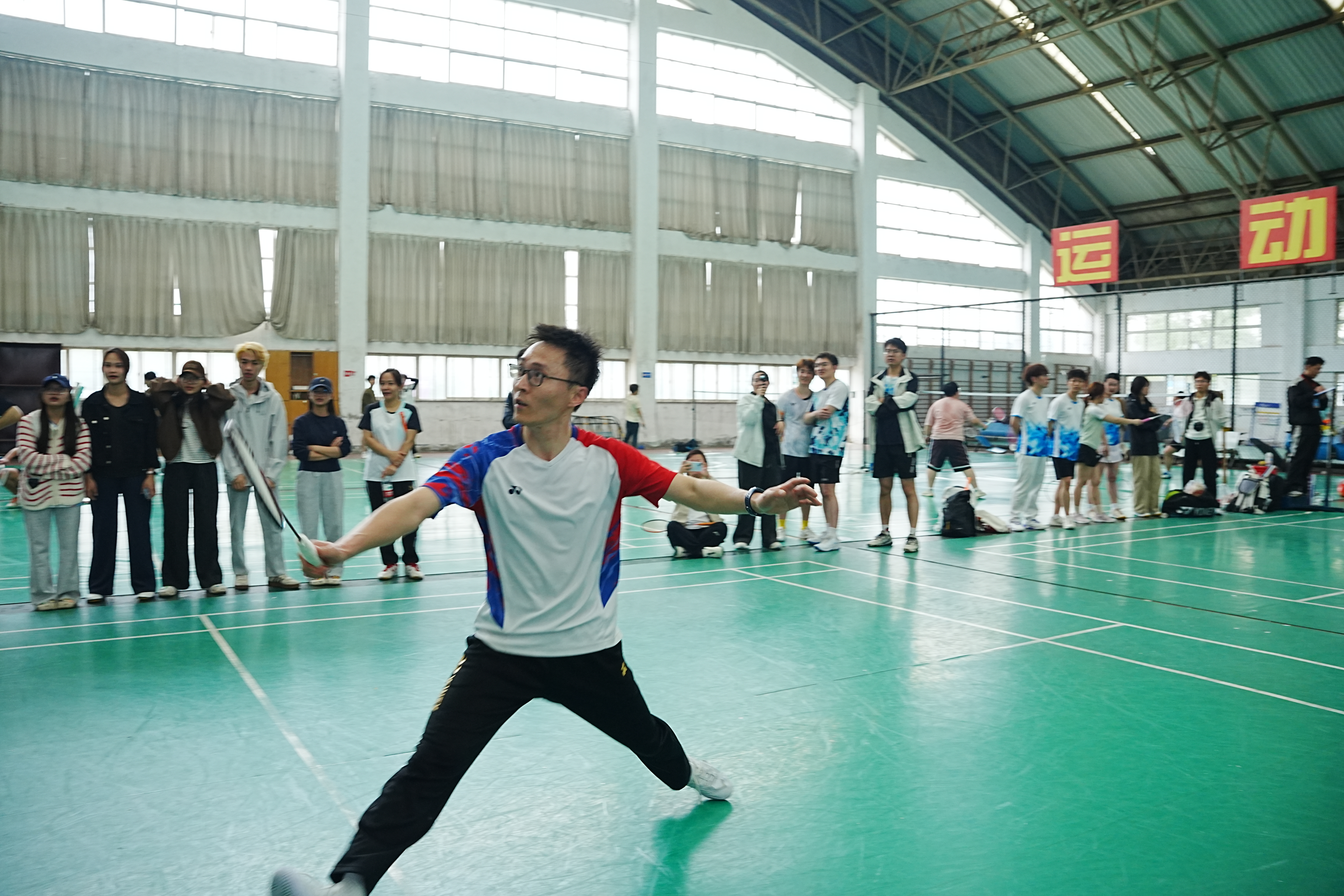 本次比赛设男单、女单、男双、女双、混双五个项目,淘汰赛采用五场三胜制。小组赛中,学院队员多点发力、配合默契:聂竹明老师与韩梓康搭档男双,攻防流畅;何元庆老师双线作战,发挥稳定;金剑老师坐镇男单,节奏把控出色;王礼军老师与张若千携手混双,攻守兼备。女双与女单赛场,张若千、檀小娟、严亚亚、黎氏琼梅等同学敢打敢拼,顺利助力团队突围小组赛。