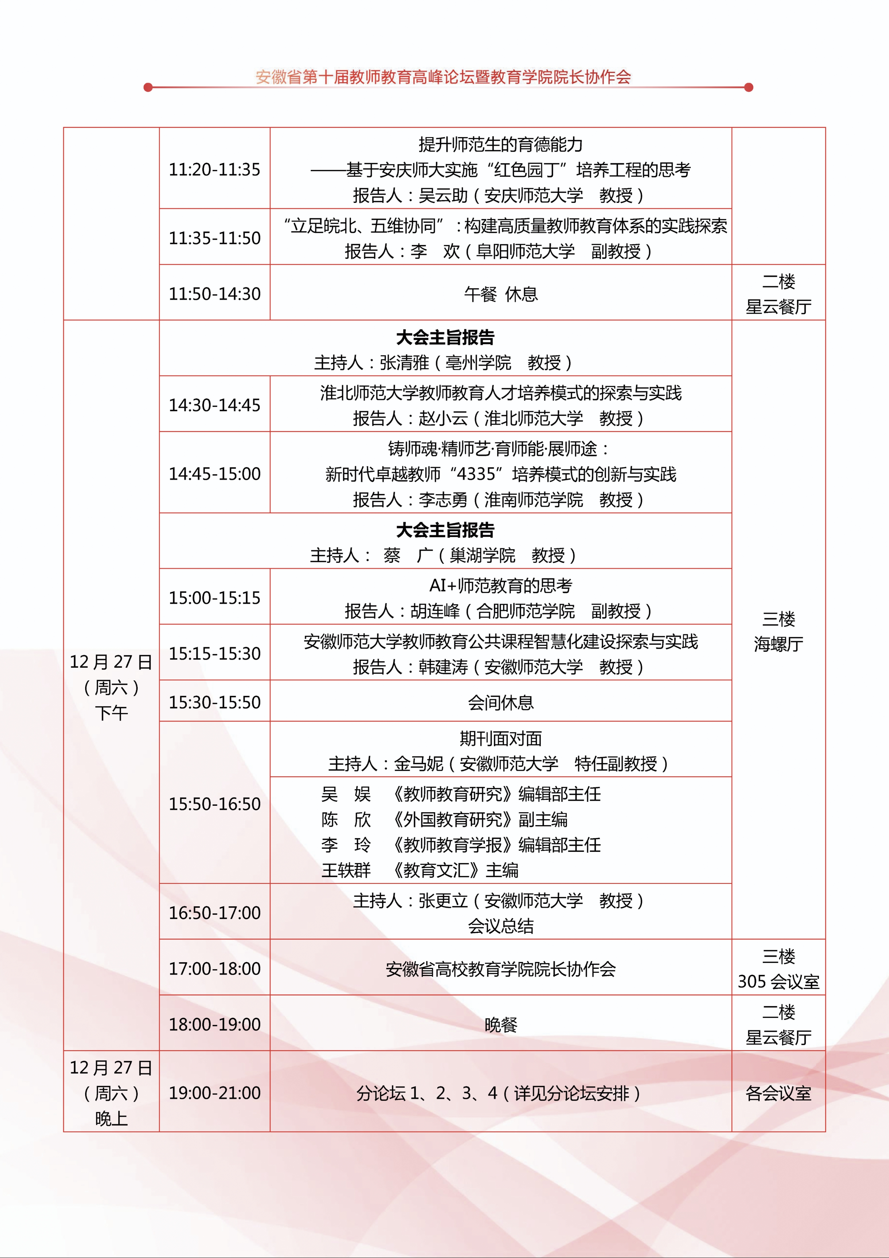 会议日程|安徽省第十届教师教育高峰论坛暨教育学院院长协作会