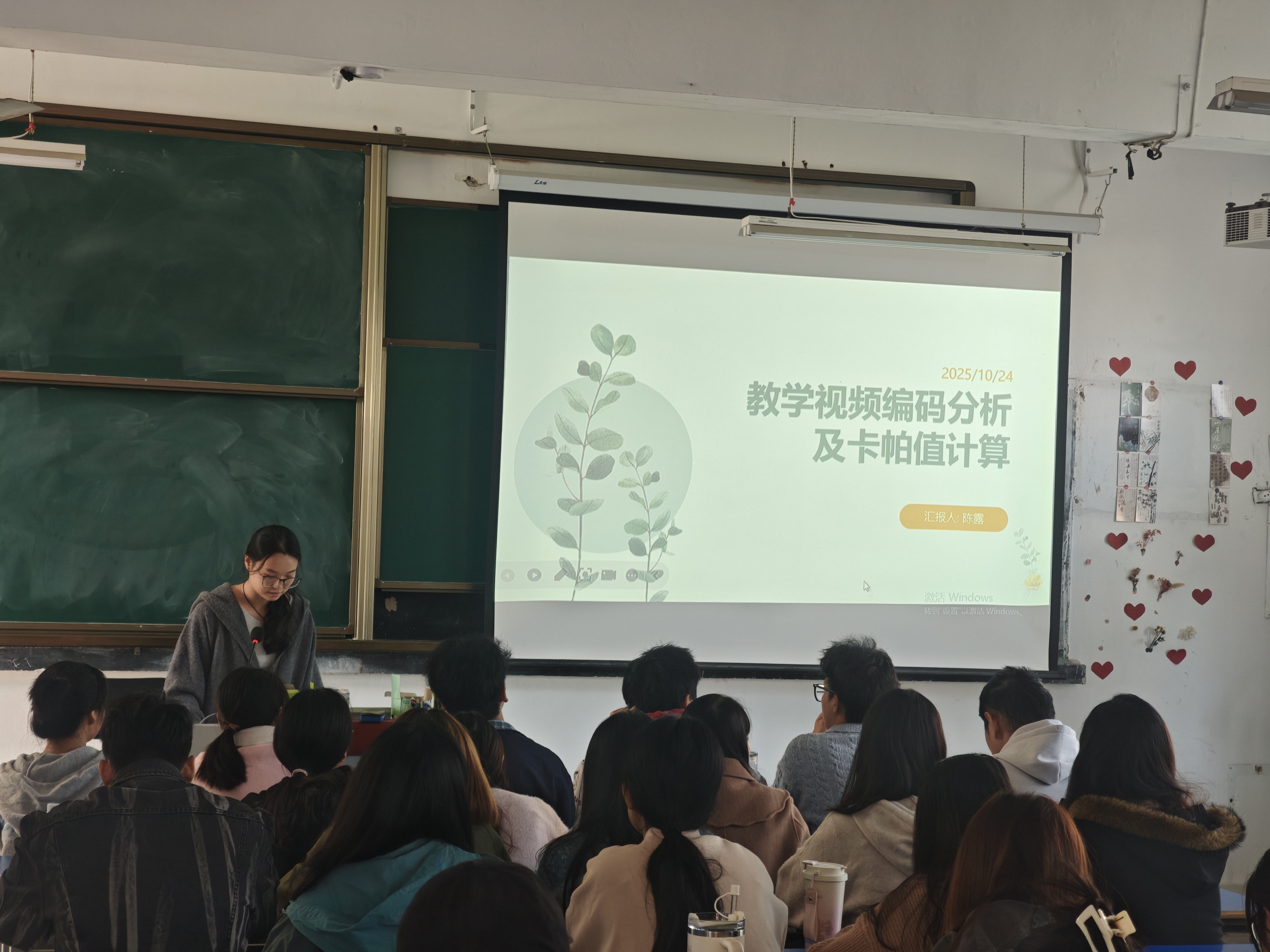 活动伊始,肖文对本次教育研习的阶段性任务、时间节点及预期目标进行了详细介绍,帮助学生明确任务、了解要求,为后续各项活动的有序推进奠定基础。随后,由三位学生代表依次上台汇报,就第一阶段的学习进展与个人感悟进行分享。他们结合具体课例,从师生互动、编码结果、一致性检验等多个维度展开分析,提出了自己在课例观摩和分析过程中产生的思考与疑问,展现出较为扎实的专业素养与敏锐的观察力。