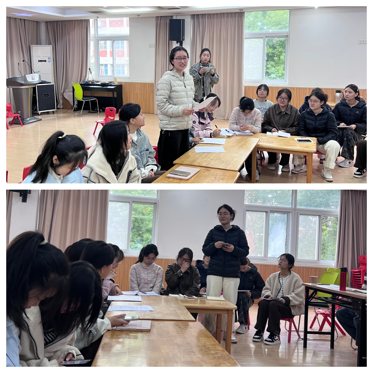 全体成员观摩了2022级学前教育专业实习生谷胜男同学的公开课大班语言集体教学活动《想换肤色的小狼》,并在课后展开了研讨互评与专业指导。幼儿园徐园长、康园长、实习指导教师老师、实习同学和各位实习指导教师对谷胜男同学的活动设计、活动组织展开交流,并对谷胜男同学在活动组织中表现出的能力给予了充分的肯定。同时也对教学实践过程中出现的问题,如课堂环节中时间的安排、师幼互动等方面提出了相关建议。