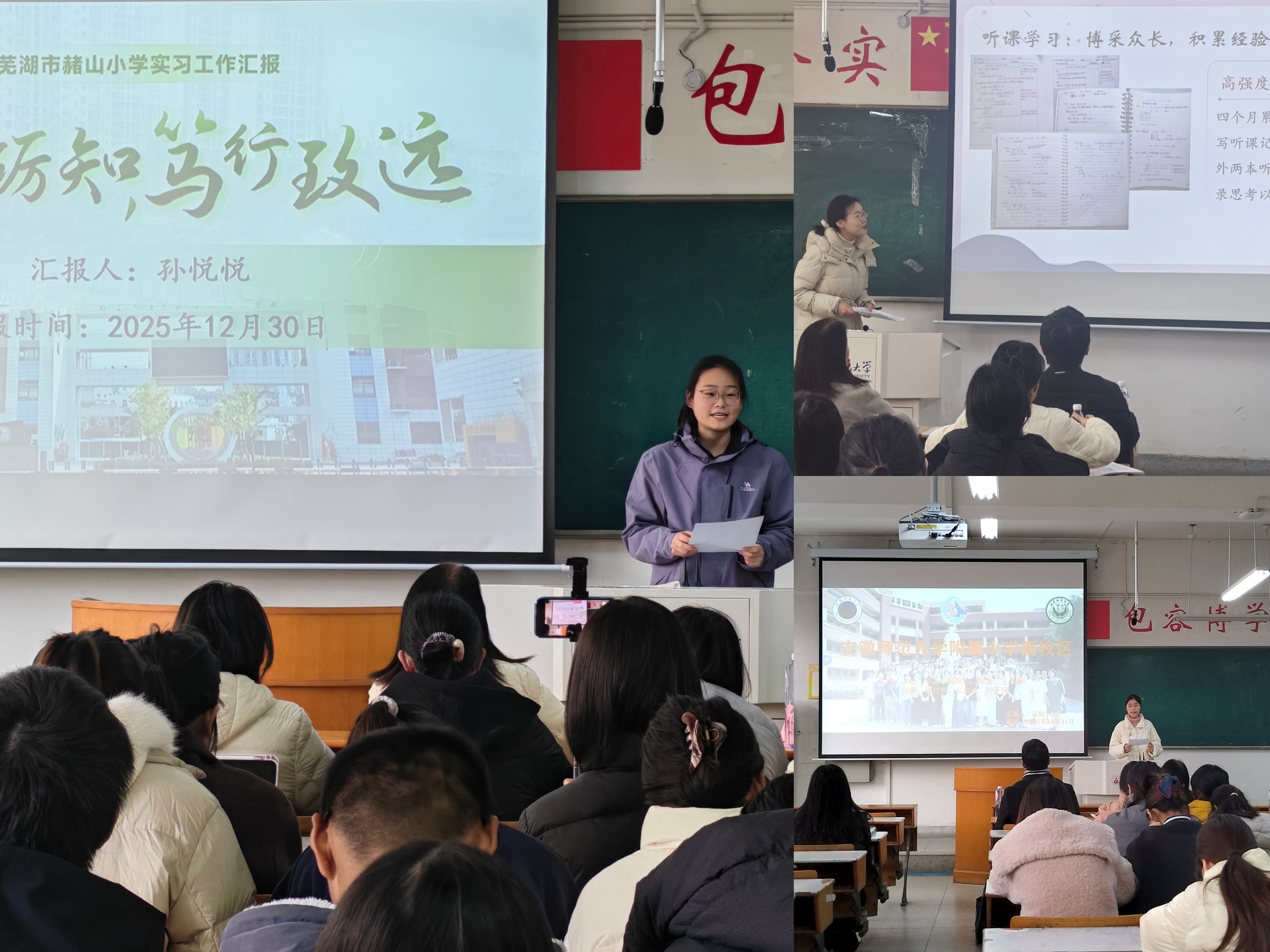 总结大会上,各实习小组汇报展示了实习期间的收获与成长,大家分享了从初次上课的紧张到从容驾驭课堂的成长历程,同学们普遍完成了从“理论学习者”到“教育实践者”的身份转变,加深了对“一专多能”全科型教师的切身理解,更深刻体会到小学教师的专业职责与使命。