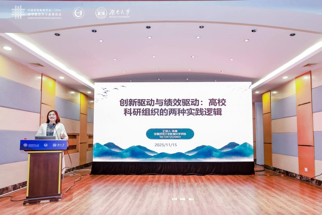 2025年11月14日至11月16日,由中国高等教育学会主办、中国高等教育学会高等教育学专业委员会与湖南大学联合承办的高等教育研究博士学术论坛暨中国高等教育学会高等教育学专业委员会2025年学术年会,在湖南长沙湖南宾馆顺利召开。本次会议主题为“中国高等教育强国建设研究”,吸引了来自全国多所高校和研究机构的高等教育研究者、青年教师以及硕博士研究生共计600余人参会。我院徐红教授、陈晨老师与张帅老师带领高等教育学专业两名博士研究生一同参会。徐红教授应邀在学术年会分会场作学术报告,陈晨老师应邀在青年学者论坛上发表学术报告。