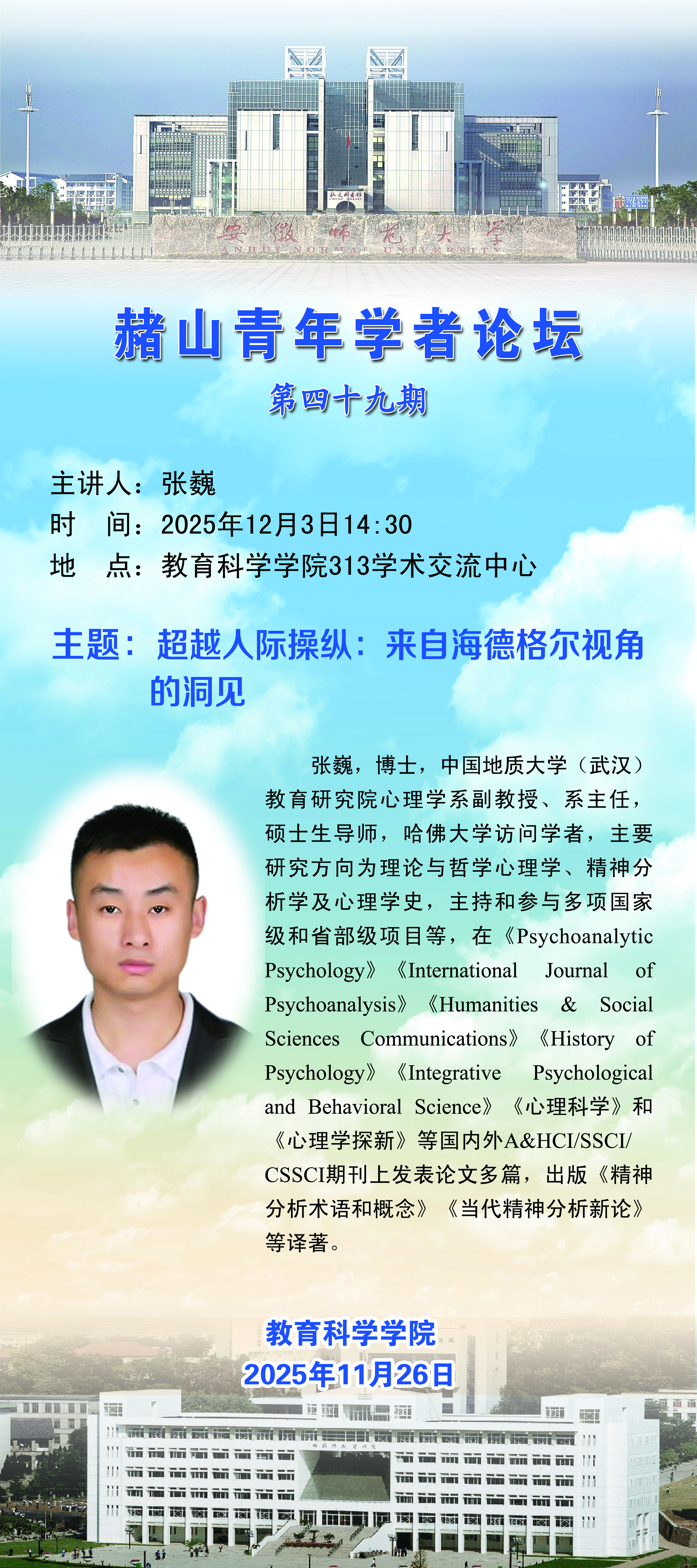 【学术预告】赭山青年学者论坛(第四十九期):超越人际操纵:来自海德格尔视角的洞见