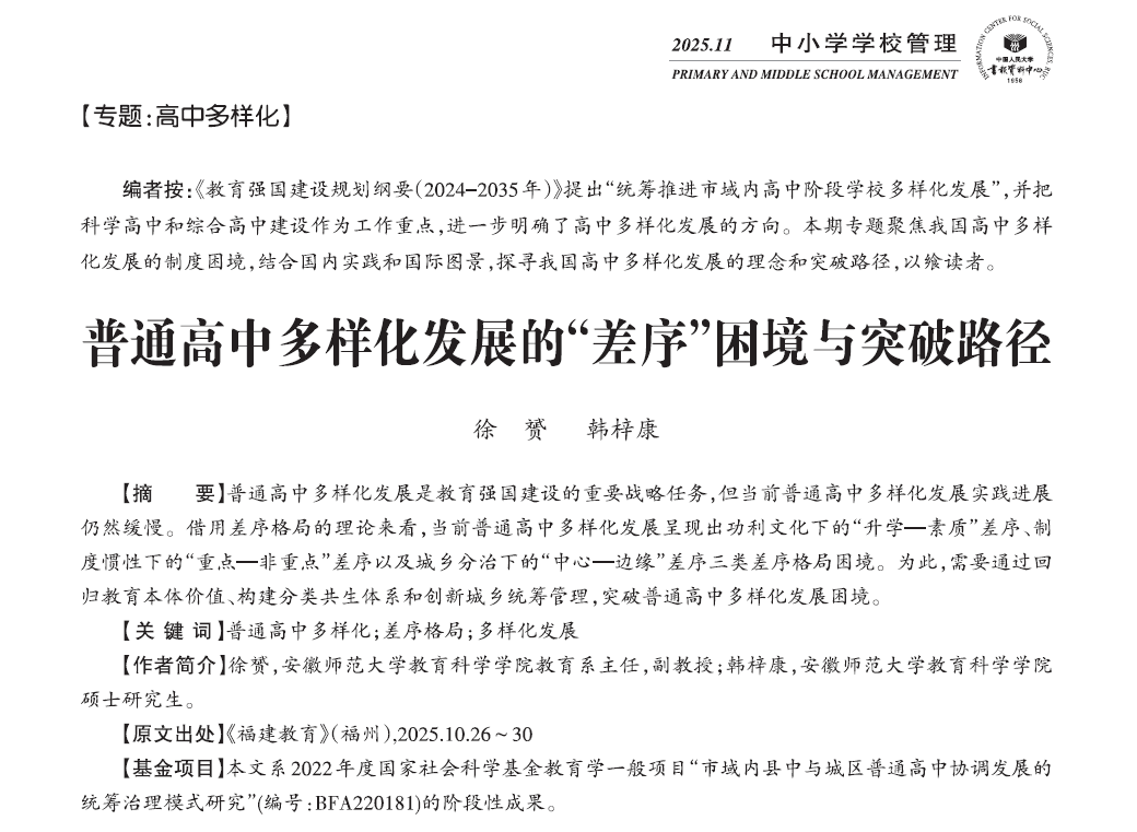 徐赟等:普通高中多样化发展的“差序”困境与突破路径