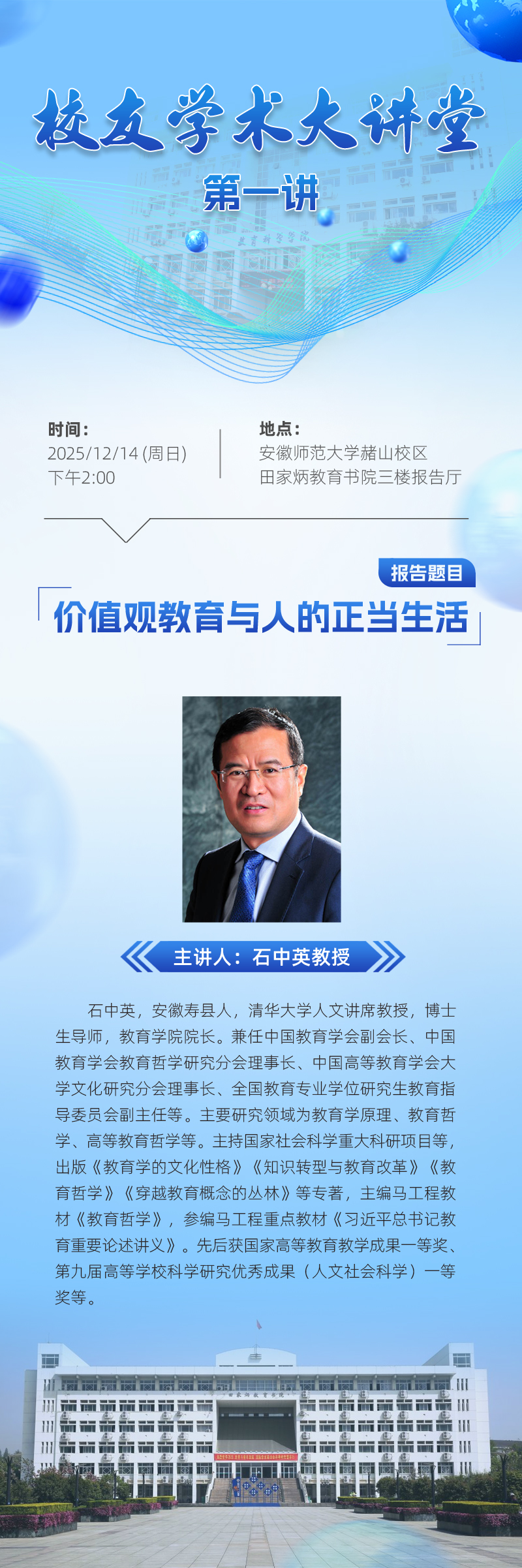 【学术预告】校友学术大讲堂第一讲:价值观教育与人的正当生活