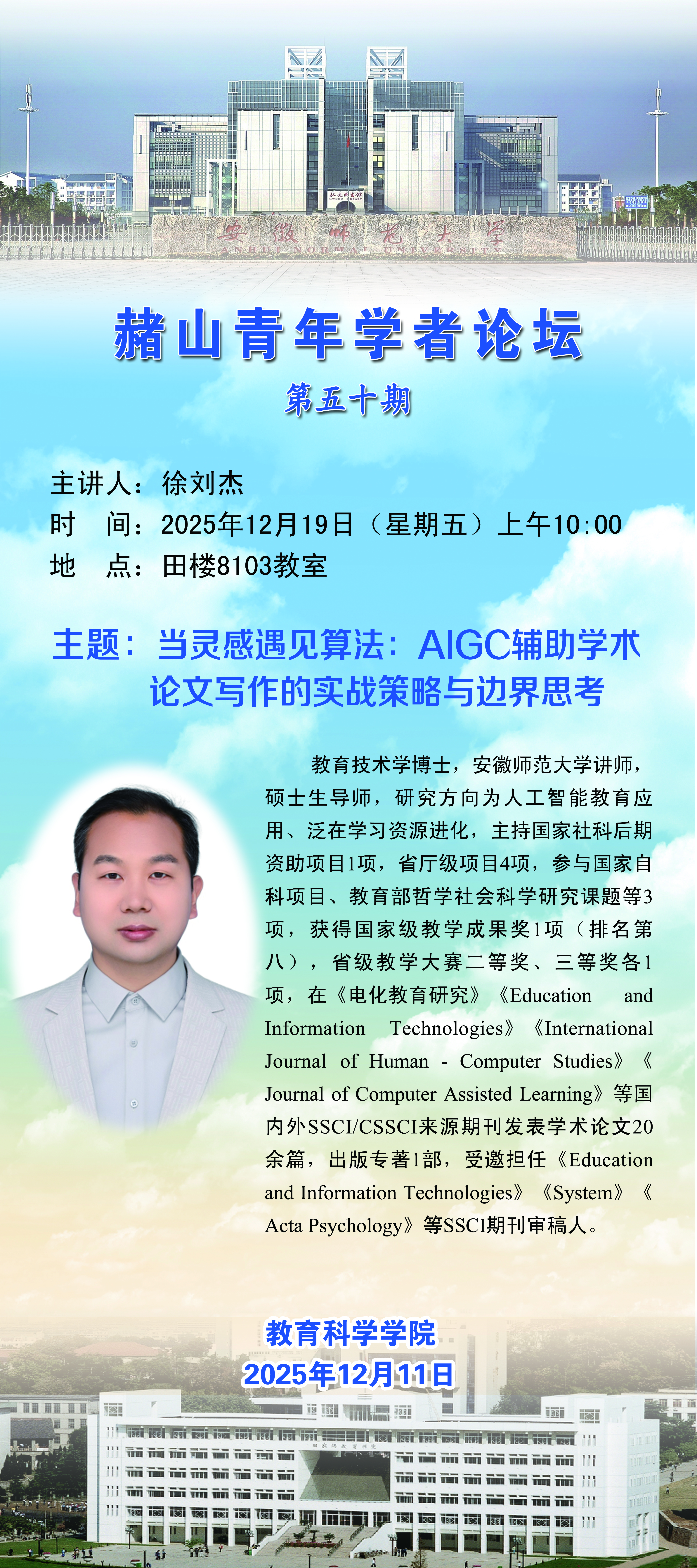 【学术预告】赭山青年学者论坛第五十期——徐刘杰:当灵感遇见算法:AIGC辅助学术论文写作的实战策略与边界思考