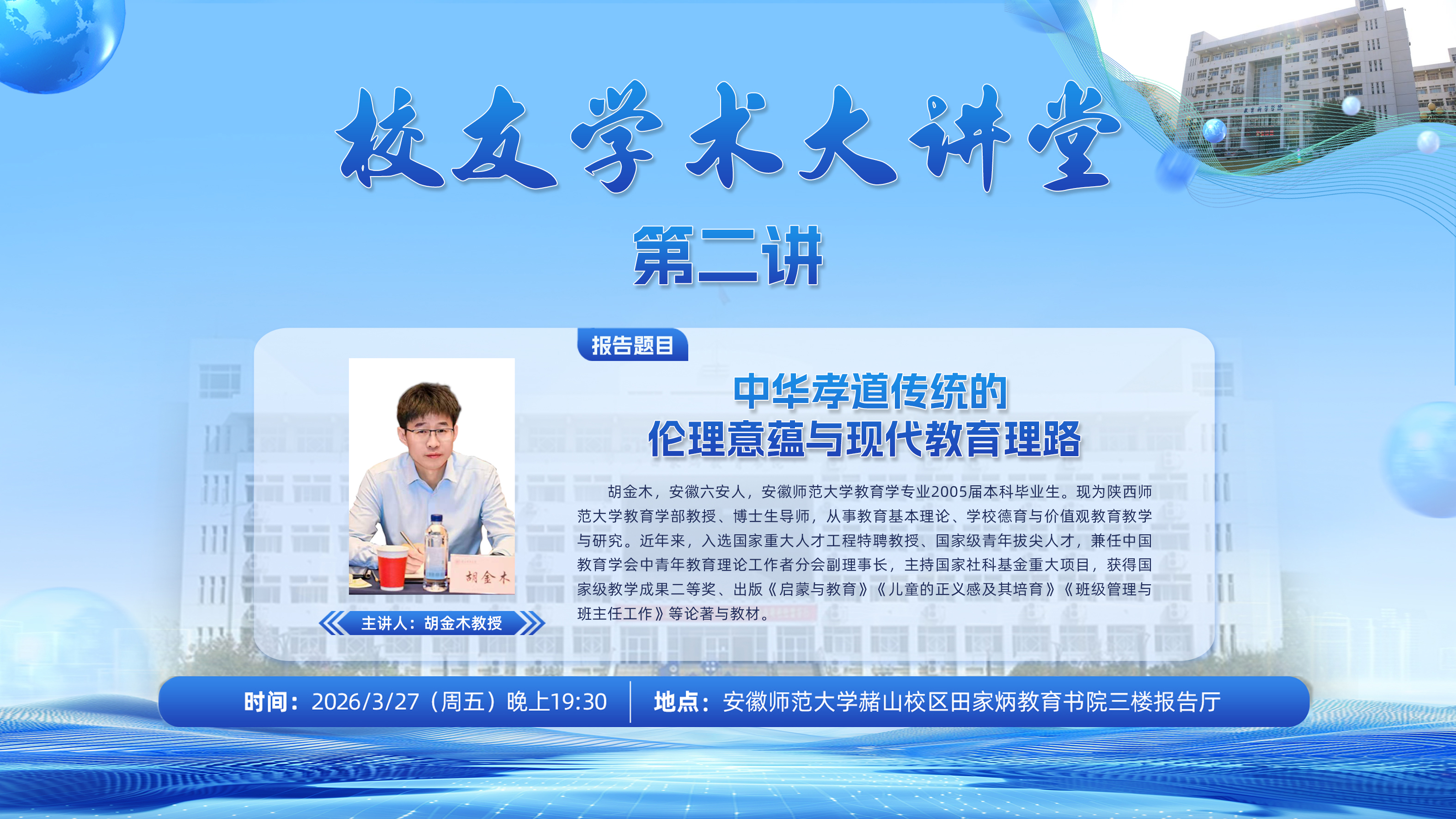 【学术预告】校友学术大讲堂第二讲:中华孝道传统的伦理意蕴与现代教育理路