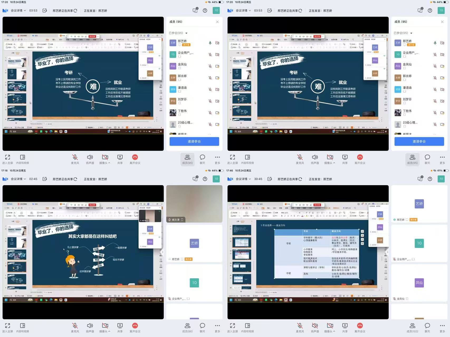 线上分享会中,邢艺娇进一步围绕考研择校与就业发展展开补充讲解,结合详实数据分析了多所热门院校的近年分数线、复试特点与备考策略,帮助同学们更清晰地把控考研全局。在互动环节,同学们踊跃提问,内容涵盖复习方法、院校选择、就业准备等多个方面,学姐一一给予细致解答,现场气氛热烈。