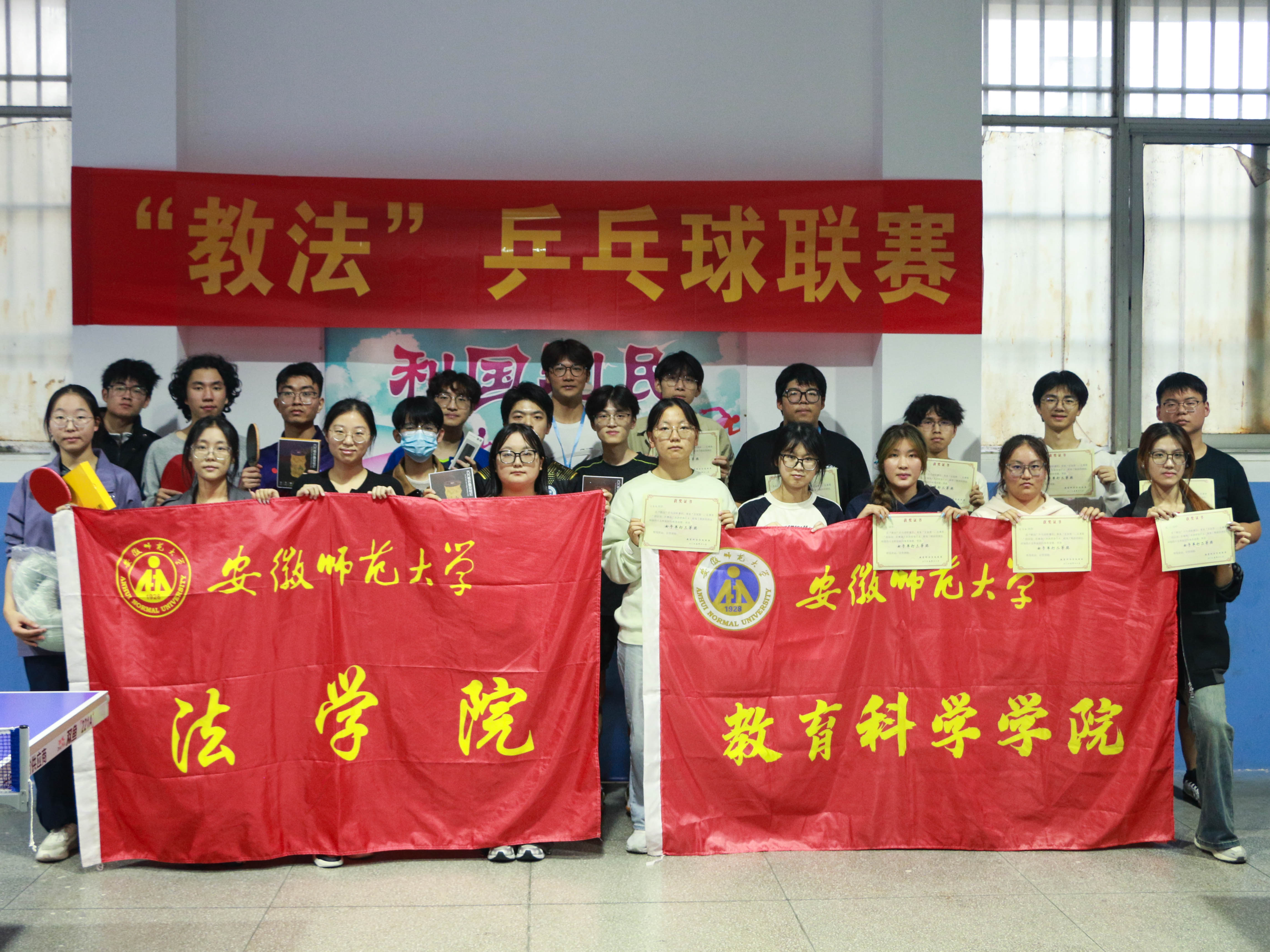11月9日,教育科学学院与法学院于赭山校区乒乓球馆共同举行“教法”乒乓球联赛。在此次联赛中,选手们挥拍对攻、精准落点,在快慢节奏切换与攻防转换间展现精湛球技。此次比赛不仅为同学们提供竞技舞台,更以小球为媒促进两院学子深度交流,在运动乐趣中凝聚青春力量,彰显体育活动的育人价值。