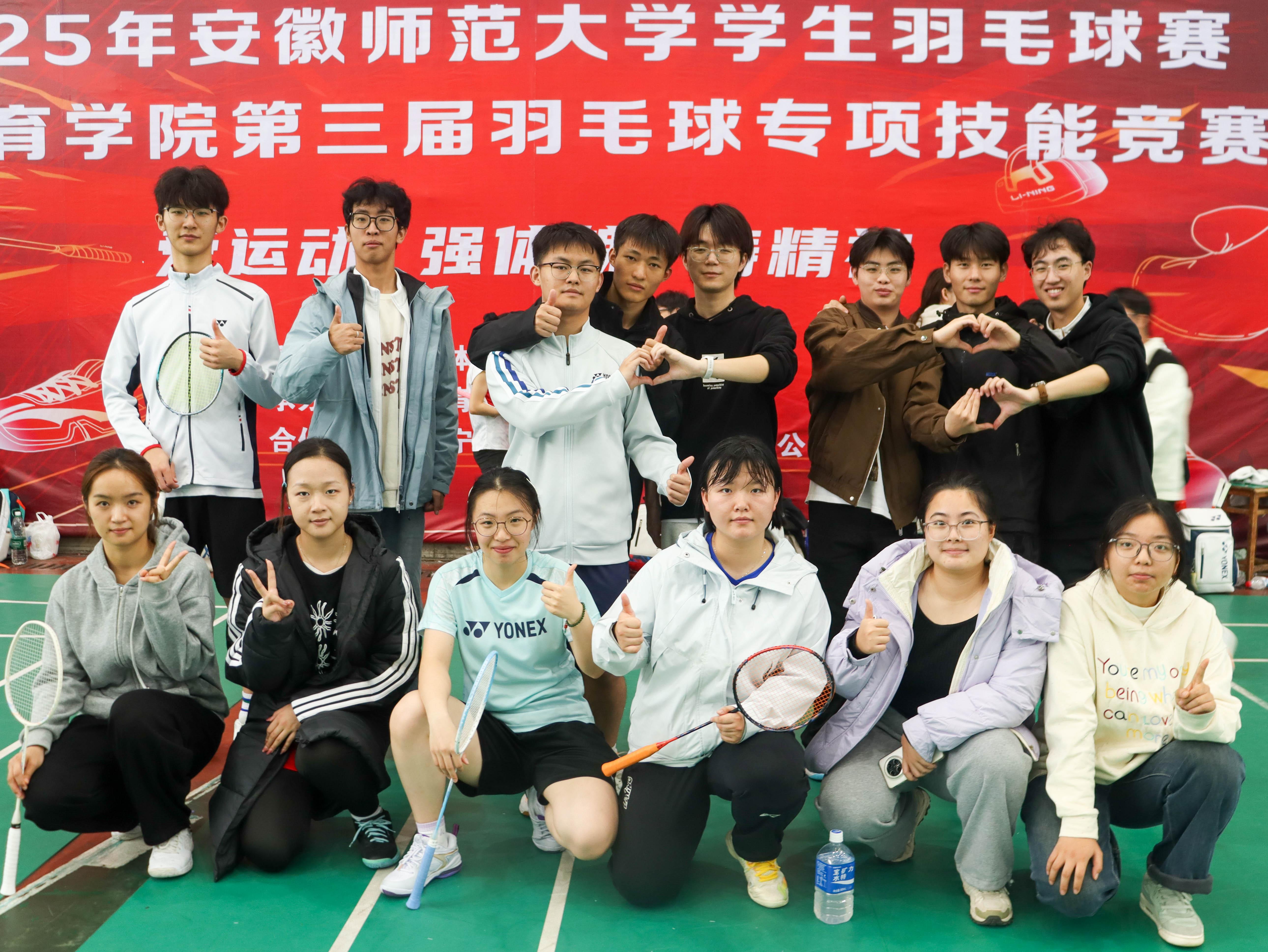 11月8日至9日,安徽师范大学2025年学生羽毛球比赛于花津校区南体育馆举办。在此次校羽毛球赛中,教科院学子与各学院选手同台竞技,精准吊球、迅猛扣杀与默契配合尽显我院学子拼搏姿态。最后,甲组女子团体荣获第三名的好成绩。