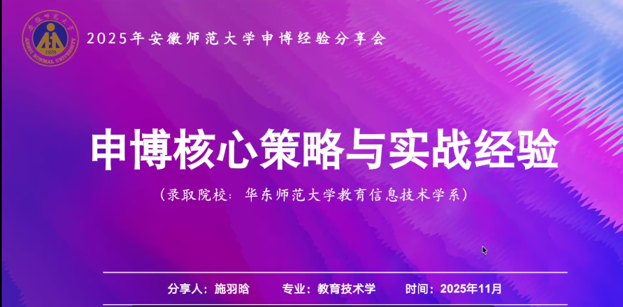 2025年11月26日,教育科学学院面向研究生举办考公与申博专场经验分享会,三位优秀研究生围绕考博、考公及选调生备考分享实战经验,为同学们提供精准指引。