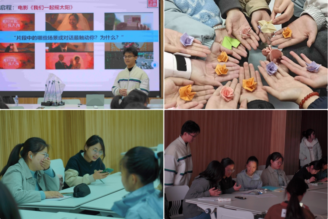 第一课“探索我的‘人生大事’”以建构解决方案原则为支撑,通过破冰互动与片段感悟、“烟火与小船”艺术表达、“人生大事卡”探索及微小意义瞬间记录,帮助成员建立安全团体氛围,思考“失去”与“希望”的关系。第二课“编织支持的能量之网”以电影《我们一起摇太阳》为情感载体,依托正向建构、赋能赞美等技术,通过“生命小确幸分享”“光影片段感悟”“支持星系图绘制”“温暖见证”等环节,帮助成员发现身边社会支持资源,强化生命意义认知,提升关系中的能量感与意义感。第三课“在差错里打捞星光”以前进一小步为干预核心,通过反馈分享、重构工作坊,让成员在书写差错清单、小组共创星光视角等活动中打破“差错即失败”的认知,掌握从失误中挖掘成长价值的方法,实现意义重构与心理韧性提升。第四课“在希望中行动”则通过角色体验、行动清单、爱的祝福等环节,促进成员具象化生命意义,将意义认知转化为责任、陪伴、希望类具体价值行动。