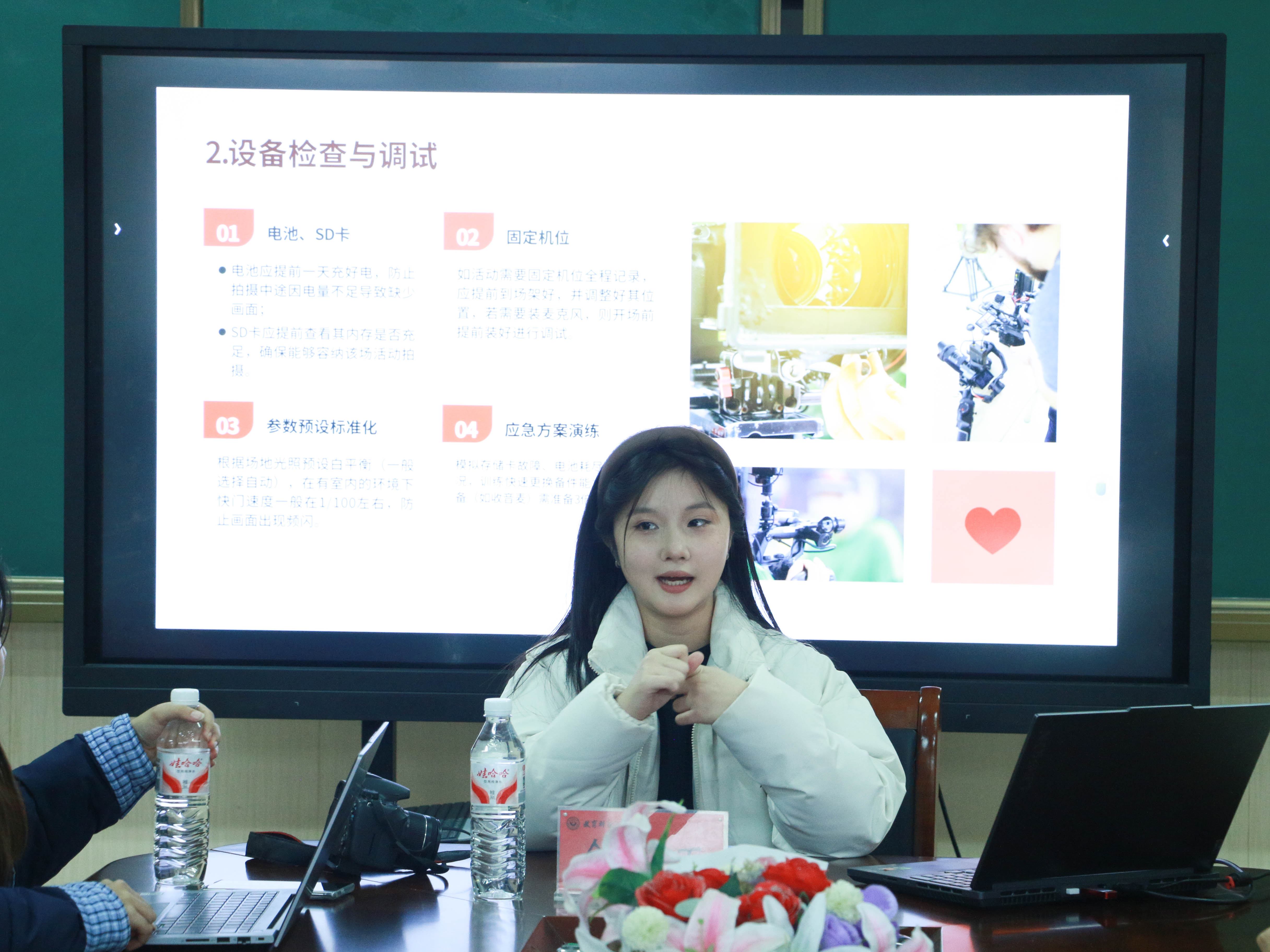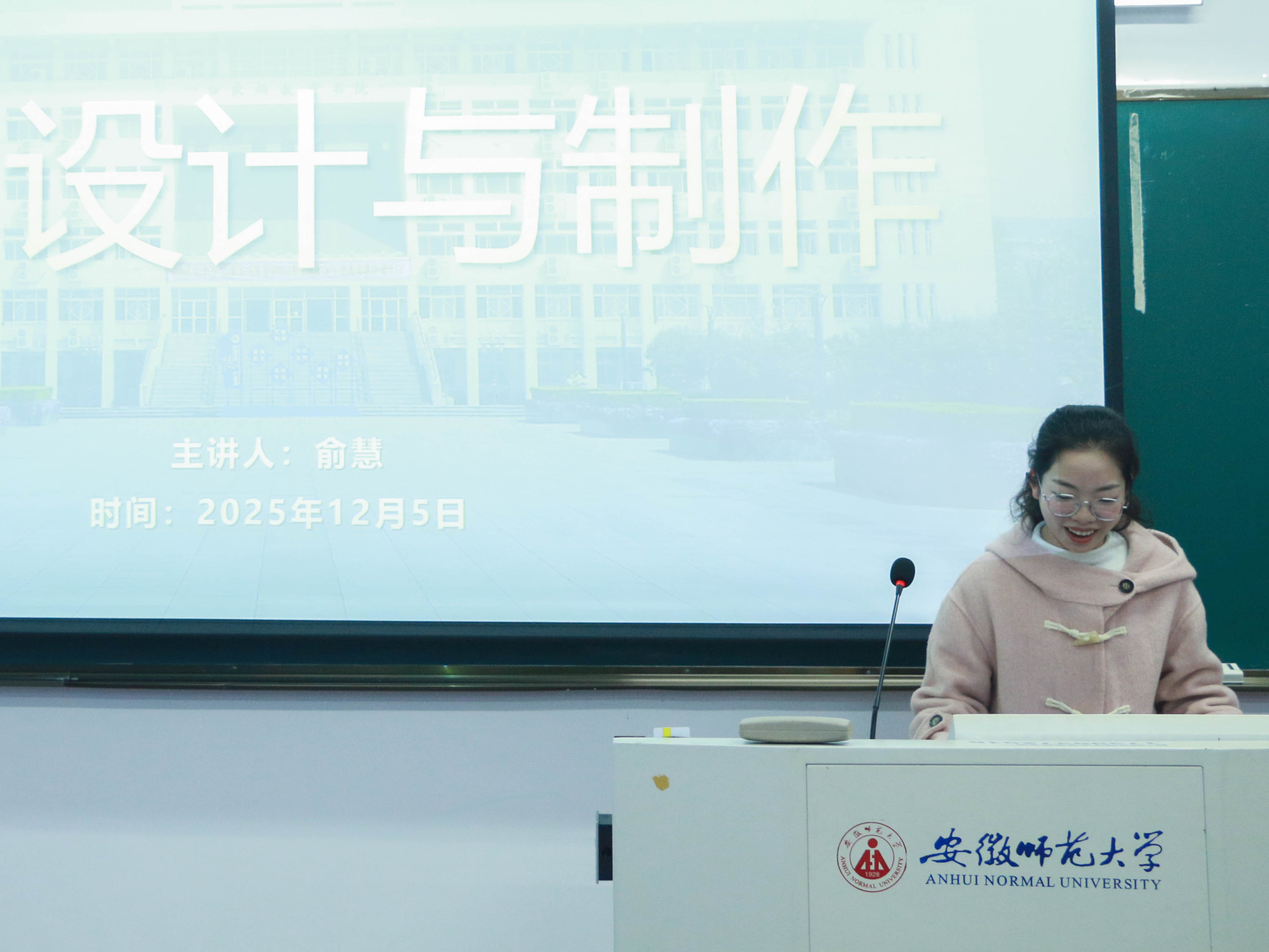 专业深耕助力教科学子厚积薄发。校团委王申振老师为同学们开展“挑战杯”专题指导,结合案例与往届作品,系统讲解赛事要点、计划书撰写与PPT展示技巧,并鼓励大家立足专业、积极创新,通过参赛锻炼实践能力、服务社会,在创新中实现青春价值。2025级教育技术学专业王兴振在《活动的有效策划和组织》讲座中,结合学生会工作的完整周期——从前期策划、中期执行到后期总结,并分享他的切身经验。他讲述如何在此过程中完成从被动参与者到主动组织者的身份意识转变,并提炼出部门建设的务实建议,号召同学们以主人翁精神,为团队发展贡献智慧与力量。校团委宣传部余小雨、刘欣雨以《视频的拍摄与剪辑》主题展开交流培训,系统讲解从策划到成片的完整流程。她们强调策划先行,并现场演示如何运用运镜技巧捕捉人物特写、关键瞬间、听众反应及如何通过剪辑完成故事的二次创作。2022级教育技术学俞慧作《PowerPoint设计与制作》主题分享。她详细讲解数据呈现的逻辑脉络与解读技巧,并提供实用方法与操作要点,以有效提升PPT数据展示的专业性与易懂性。