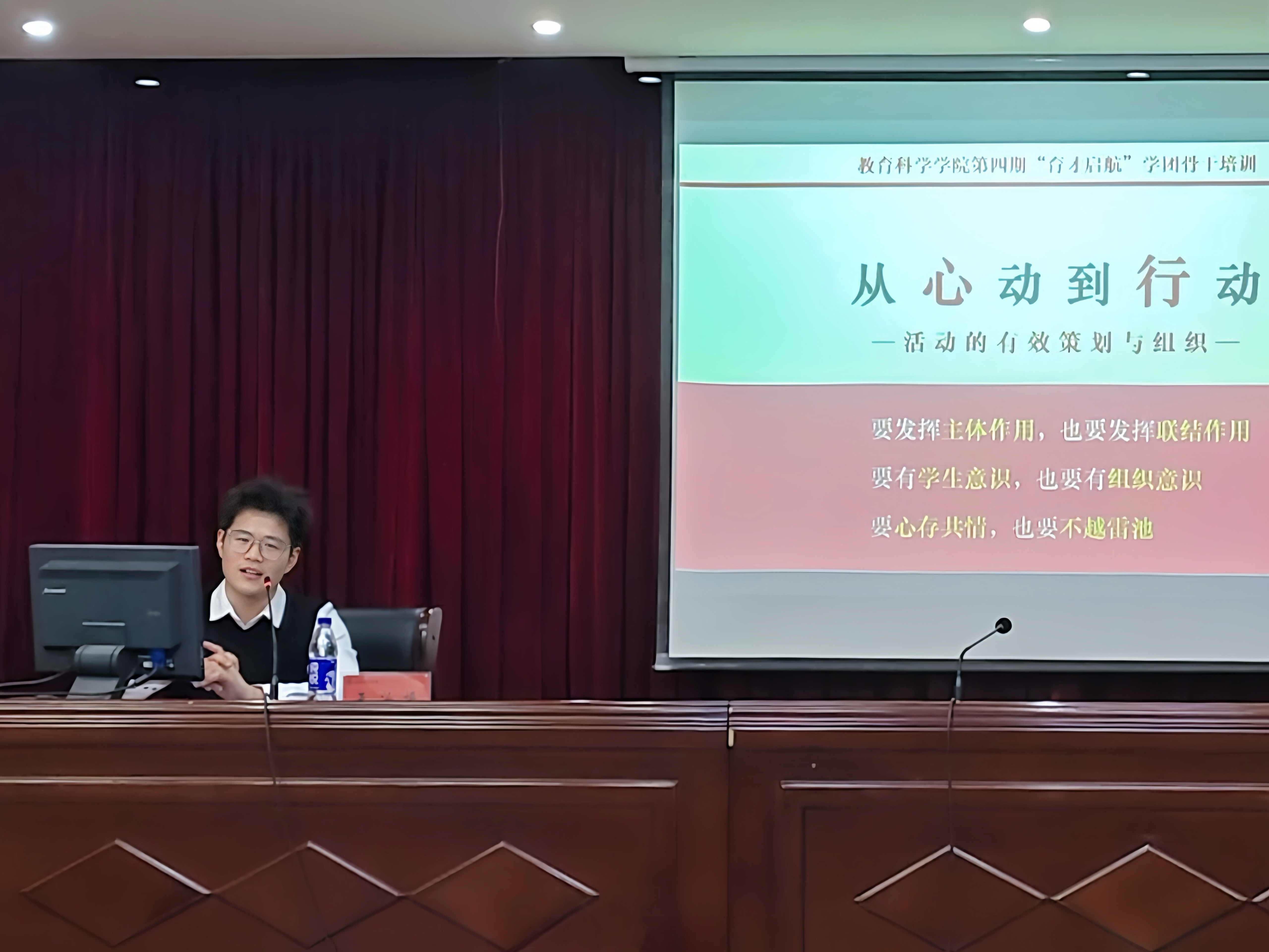 为落实大学生护航行动计划,提升学团骨干政治素养与责任意识,强化学团组织凝聚力、执行力。2025年11月至12月,教育科学学院开展第四期“育才启航”学团骨干培训班。