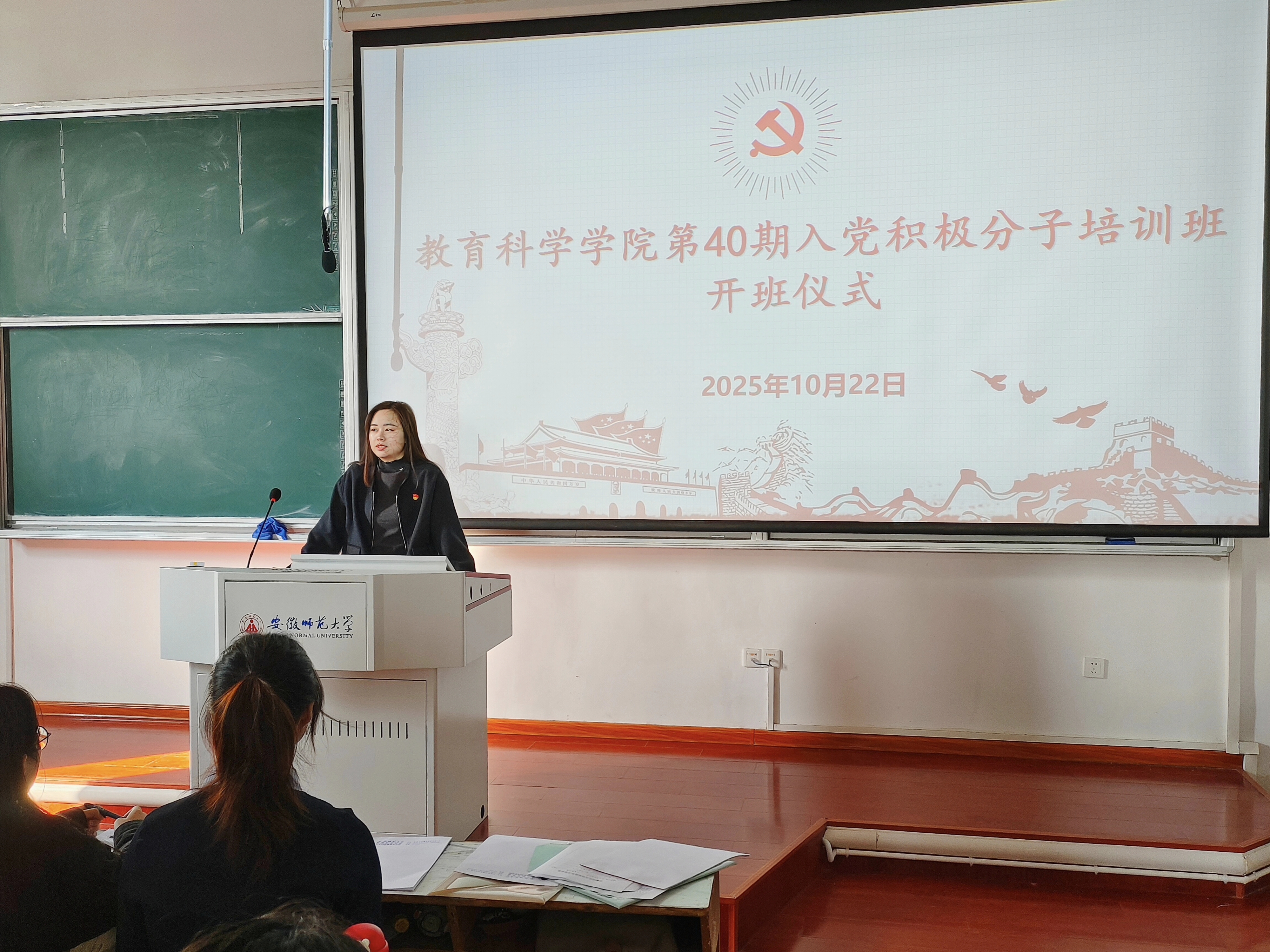 本期培训班将围绕党的理论知识、党史教育、党性修养等内容展开,采用视频学习、理论授课和实践交流等多种形式,帮助学员筑牢思想根基,砥砺入党初心;锤炼党性修养,践行使命担当。教育科学学院将持续推进“党员发展严格把关”、“党员能力精细培养”的工作要求,继续完善党员培养机制,引导他们以学促行、以行践知,争做有理想、有知识的社会主义建设的有用之才。