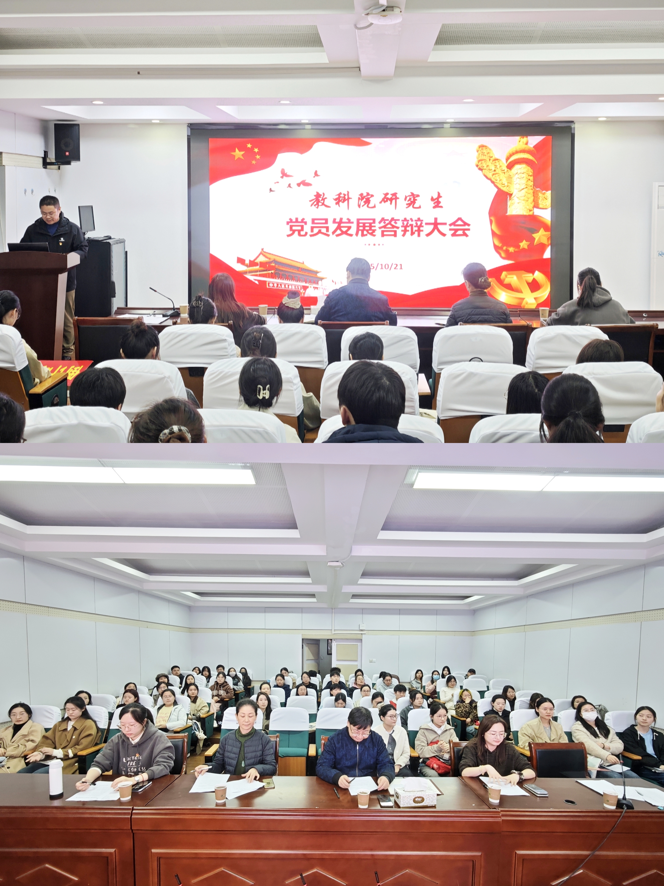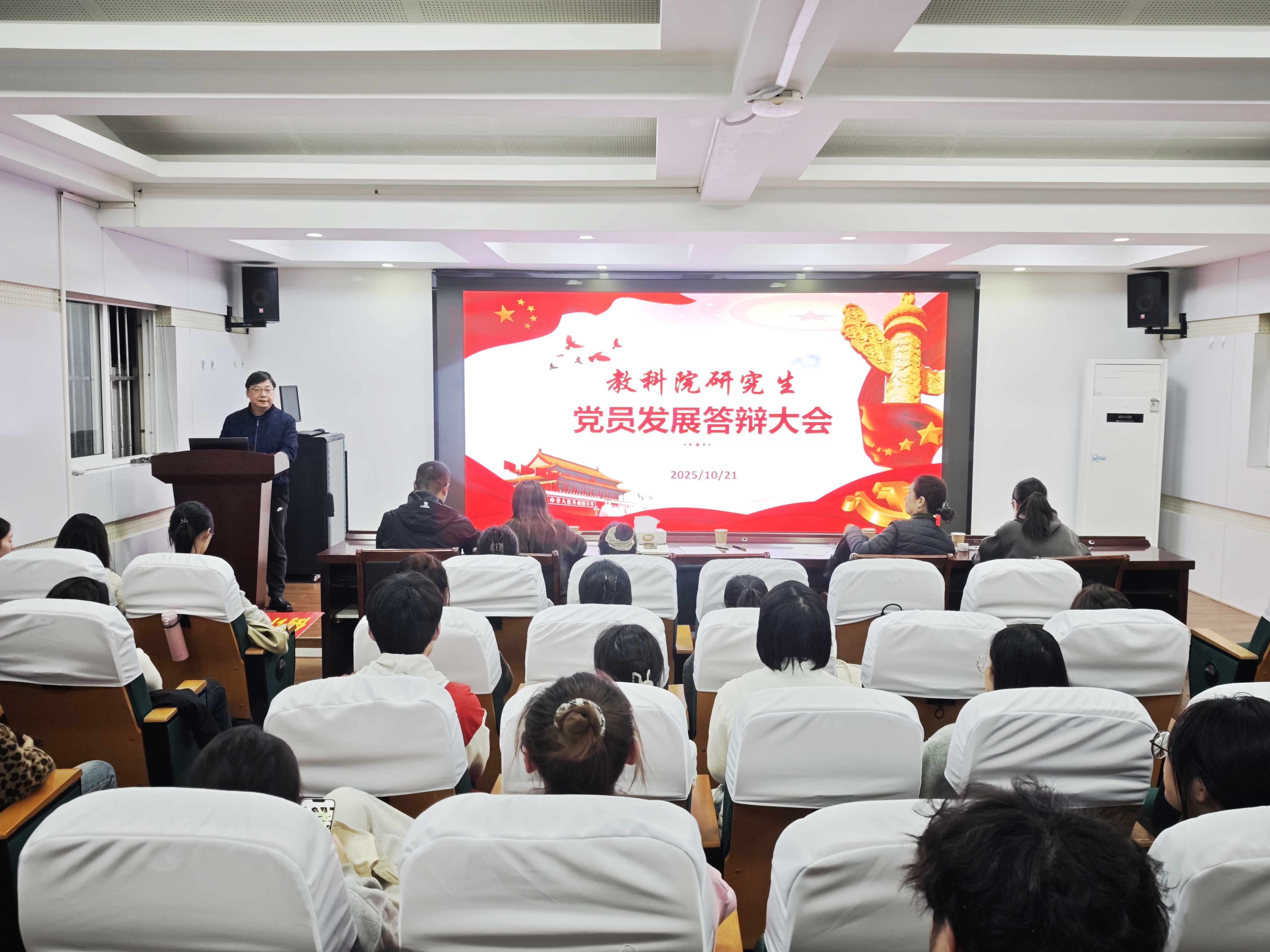 为规范党员发展流程、提升党员发展质量,2025年10月21日,教育科学学院研究生各党支部于田楼B座313室召开2025年下半年党员发展答辩大会。学院党委书记许国飞、副处级组织员何海燕,辅导员莫大贡、蔡文、薛敏及各支部书记、入党积极分子参会,会议由莫大贡主持。